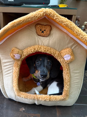 Warm, removable, washable pet house bed that keeps small dogs comfortable year-round and cleans easily
